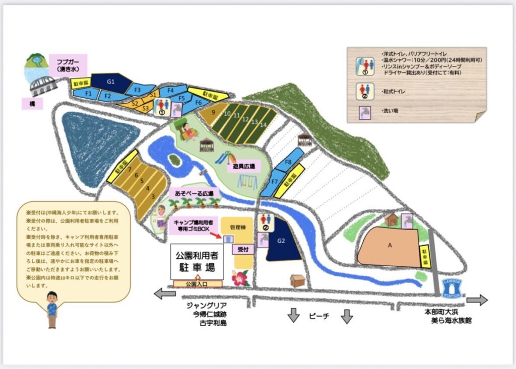 田空ハーソー公園キャンプ場は、沖縄北部の人気スポットに囲まれた好立地。
