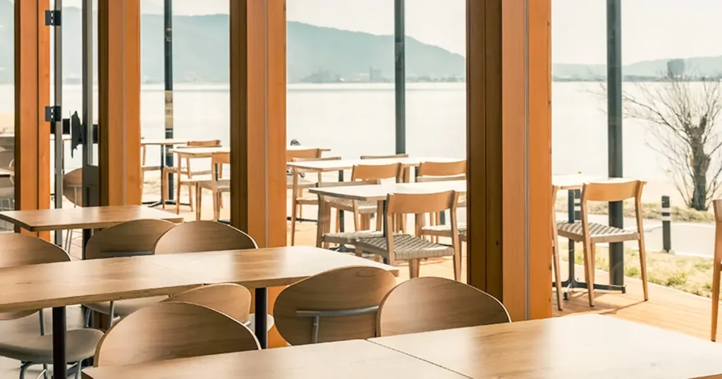 天気の良い日は、開放的なデッキテラスで湖風を感じながらのお食事がおすすめ。テラスの一部はペット同伴エリアとして整備予定(2026年夏スタート予定)で、愛犬と一緒にリラックスした時間を過ごしていただけます。